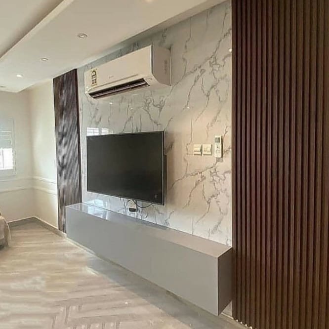3. المظهر الجمالي : يمكن أن يبدو مثل الخشب الطبيعي، مما يمنح المكان لمسة دافئة وجذابة دون الحاجة للصيانة المعقدة.